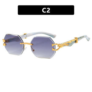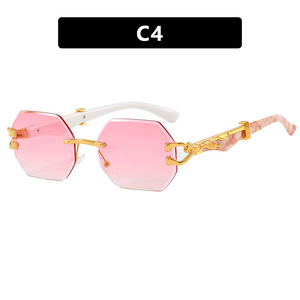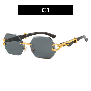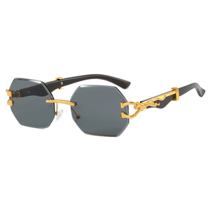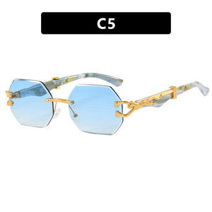 クロスボーダーヒョウヘッドフレームレスポリゴン不規則サングラスヨーロッパとアメリカのカットエッジサングラスインターネットセレブストリート撮影サングラス