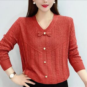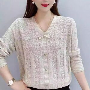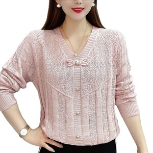 春の新スタイルのボウタイボトムスタイル、シンプルで多用途な中空セーター、ゆったりとした長袖ニットセータートップ