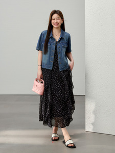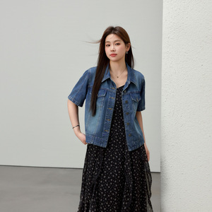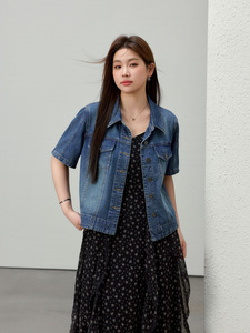 [ブルーオーシャンアイランド] レトロ香港スタイルデニムジャケットスリムプラスサイズ女性服ファットmm2025夏の新スタイル