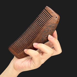 15CM ムーンコーム ブラックゴールドサンダルウッド凹型バック彫刻
