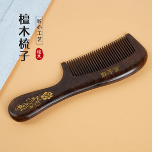 ナチュラルブラックゴールドサンダルウッドコーム、女性の長い髪用のオールインワンロングハンドルコーム、家庭用滑らかなサンダルウッドギフト木製コーム