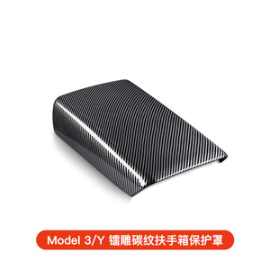 リニューアルモデル3/Y アームレストボックス保護カバー ABS [カーボンファイバーパターン]