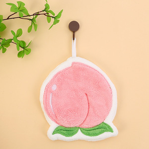 かわいいフルーツハンドタオル、コーラルベルベット、厚みがあり、吸収性があり、糸くずの出ない、吊り下げ可能な漫画の柔らかいフェイスタオル、配送用