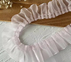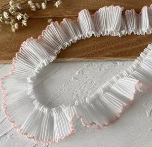 スカートレースアクセサリー装飾裾衣類アクセサリー手作り diy フリルワイドプリーツピンク