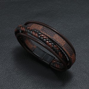 国境を越えた新製品ヨーロッパとアメリカのレトロなスタイルの既製の卸売リング磁気バックル多層手織りメンズレザーブレスレット