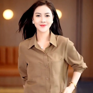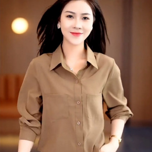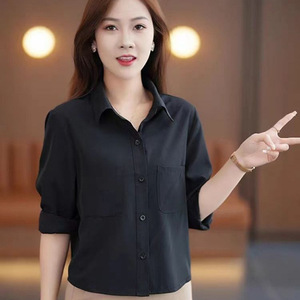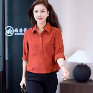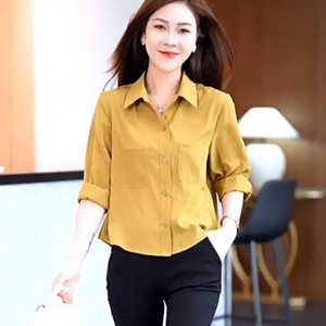 カジュアルレディースシャツ2025春秋新気質トップス長袖ゆったり大きいサイズ年齢軽減お腹カバー小柄ショートスタイル