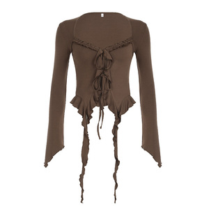 沙丘废土风荷叶边喇叭袖系带上衣不规则系带开衫长袖辣妹小众女装