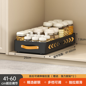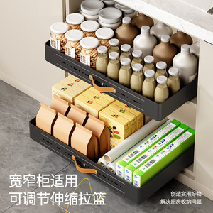 キッチン伸縮可能調整収納棚引き出し式食器棚調味料バスケット下水槽引き出し棚