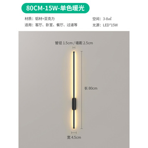 免打孔智能充电长条壁灯手扫开关极简过道客厅背景卧室床头灯
