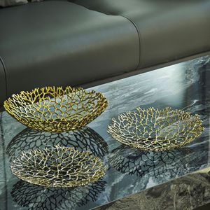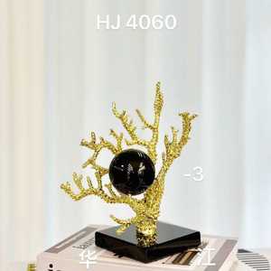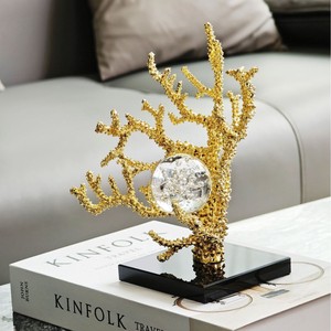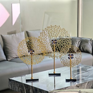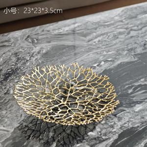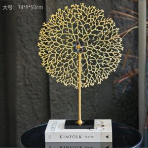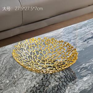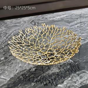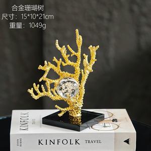 欧式创意酒店桌面摆件轻奢时尚果盘珊瑚树客厅摆设玄关金属软装饰