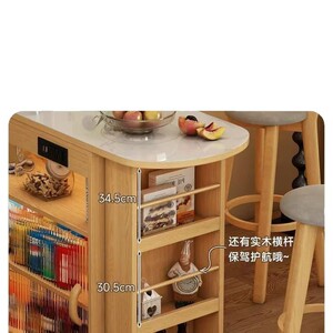 原木色吧台柜+移动组合桌【含感应灯插座】