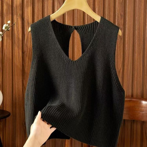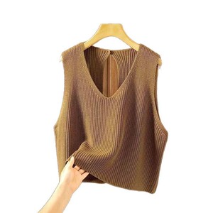 レトロな無地のルーズニットベスト春と秋の新しいカジュアルチョッキ西洋スタイル多用途ショートレースアップセーターベスト