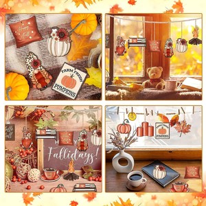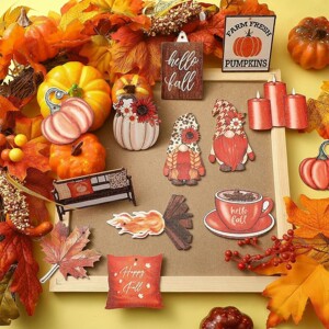 カボチャの葉の花秋の木の装飾ホリデーパーティーの装飾品 36 個秋の感謝祭の装飾ノーム木製吊り下げ装飾品