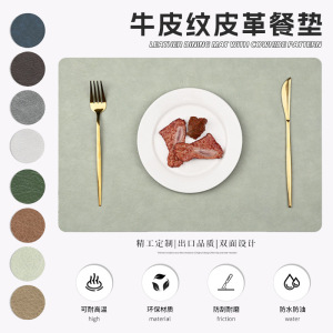 跨境爆款皮革餐垫双面方形牛皮纹西餐垫加厚防油家用餐桌垫批发