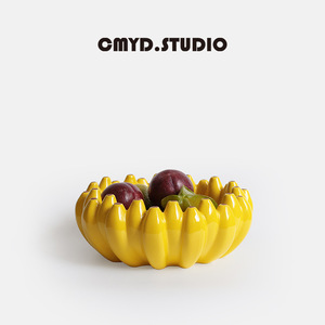 バナナフルーツプレート 1 ピースフルーツプレート家庭用セラミックドライポットプレートライト高級ハイエンド装飾面白い装飾品スナックプレート