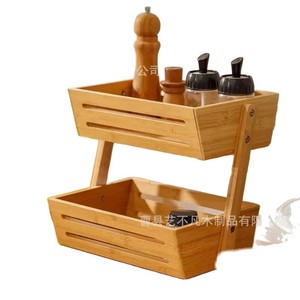台所の食べ物をカスタマイズしてバスケットを収納する二重木製果物野菜スナックパンバスケット竹木テーブル整理棚