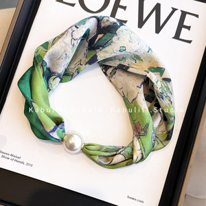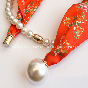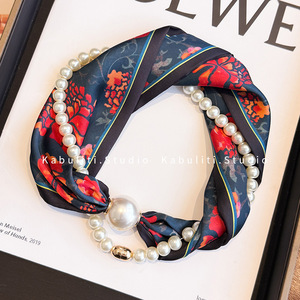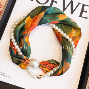 磁気ボタン真珠のネックレスの狭い長いスカーフの女性の首の鎖骨の怠け者の首を巻いてシャツの薄いマフラーを配合します。