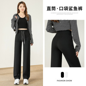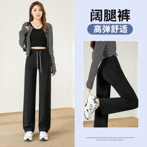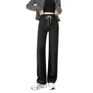 黒の紐引きストレートスポーツパンツ女性の春のたるみ感が小さいです。背が高くて腰がゆったりしています。