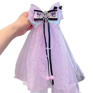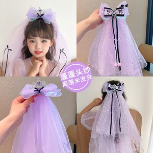 库洛米儿童蝴蝶结头纱头饰超仙女童网纱发夹公主飘带流苏防滑发饰