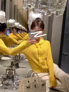 黄色小香风针织开衫外套女2025春装修身设计感气质名媛小个子上衣