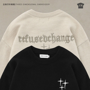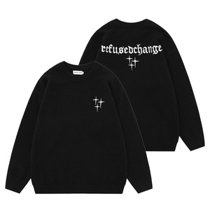 アメリカンハイストリートのシンプルなアルファベット刺繍プルオーバーセーター男女ins秋冬長袖ゆったりカップルニット