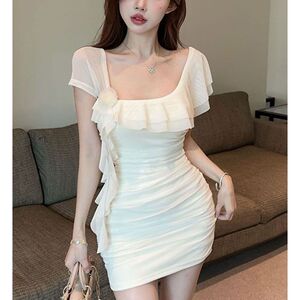 【跨境批发】网纱连衣裙设计感辣妹时尚流苏气质收腰褶皱包臀短裙