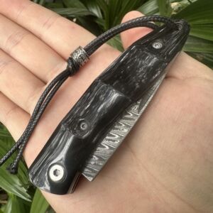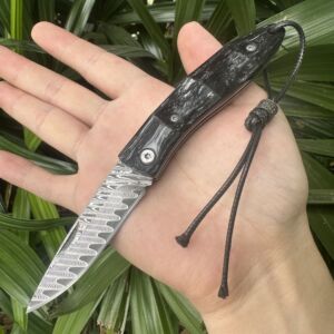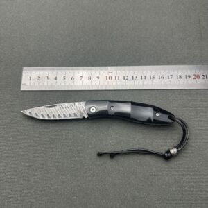 (ロックなし) 2025新品花牛角ハンドルVG10ダマスカス鋼ブレード折り畳みナイフ屋外キャンプ