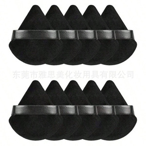 10 個ベルベットブラック扇形パウダーメイクアップスポンジパフドライパウダーメイクアップ三角ルースパウダーパフ