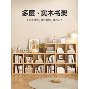 無垢材子供用本棚床置き収納ラック格子キャビネット多層本棚ローキャビネット収納キャビネットリビングルーム組み合わせ収納キャビネット