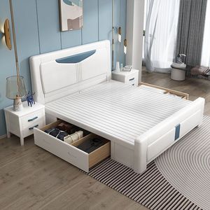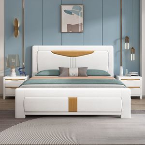 中国風無垢材ベッド 1.8m ダブルベッド ホワイトエンボスオーク シンプル ビッグウェディング 1.2m モダン マスターベッドルーム 耐久性