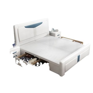 ベッド+ベッドサイドテーブル*2+通気性ラテックススプリングマットレス