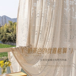月の枝の影のクリームのフランスの紗のカーテンは光を通して人のベランダの白い窓の紗の客間のカーテンのレースの紗の田園の風に通じません。