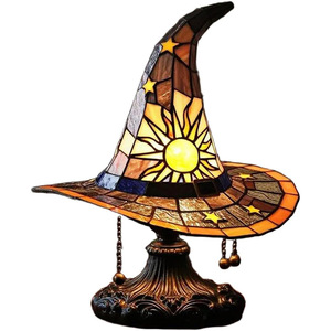 ステンドグラス魔女帽子ランプ魔女帽子ランプナイトスタンドナイトライトハロウィン装飾
