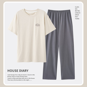100%纯棉睡衣男士夏季纯棉短袖长裤休闲可外穿家居服男夏天薄款