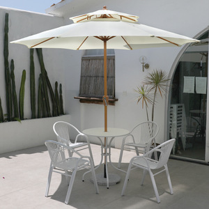 【桌椅伞组合】双顶仿木伞+φ80圆桌白色五件套