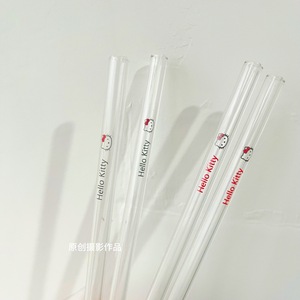 耐熱透明ガラス焼き花の工場直販、妊婦やお子様向けのカラフルなリッププロテクションドリンクガラスストロー