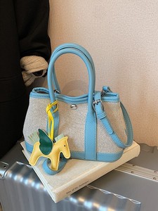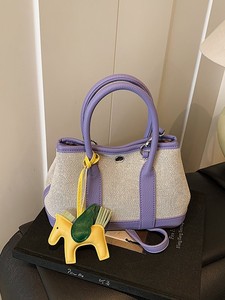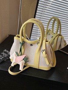 2025春季新款质感撞色手提水桶包女拼色单肩包大容量斜挎磁扣设计