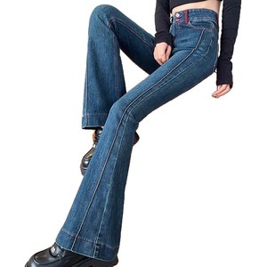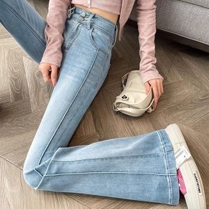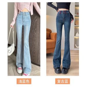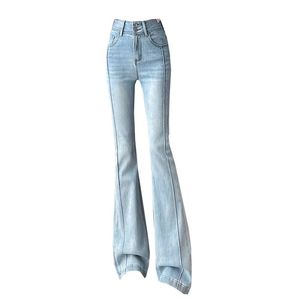女性用レトロライトカラーマイクロフレアジーンズ、小柄な方向け、2025年新作ストレッチハイウエストスリムデザイン馬蹄パンツ