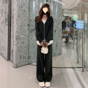 女性のための春と秋のスーツ 2025 新しいカジュアルファッション偽ツーピースフード付きスウェットシャツルーズワイドレッグパンツツーピースセット