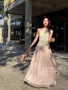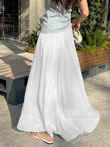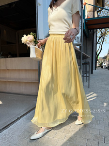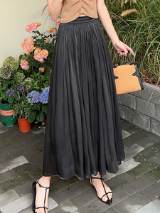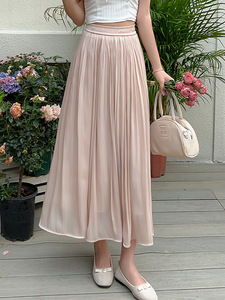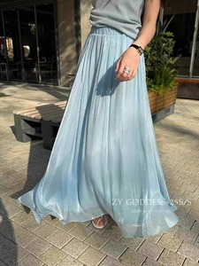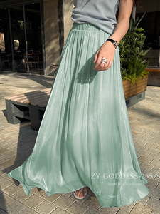 2025夏の新型の優しいストリーマ銅アンモニアのスカートの女性のしわの垂れ下がった感の高い腰の長いスカートのアンドロメダのスカートの潮