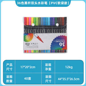 両口水彩ペン【36色 黒ポールPVCソフトバッグモデル】
