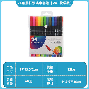 両口水彩ペン【24色黒ポールPVCソフトバッグモデル】