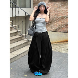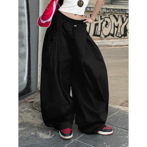 嘻哈潮酷辣妹风抽褶束脚灯笼裤小众设计宽松垂感拖地长裤休闲女装