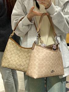 寇家Laurelaシングル肩ミルク茶色レトロ老花百合斜めクロストート腋の下バッグ大容量放浪バッグ