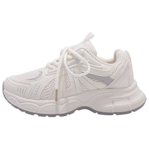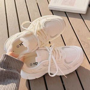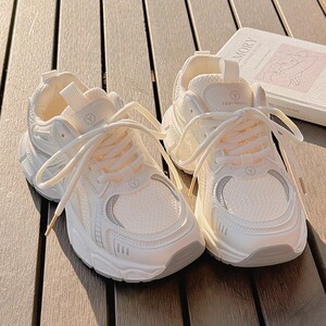 女性用厚底ダッドシューズ 2025 夏の新スタイル多用途学生ワイドレッグパンツ白靴女性のメッシュカジュアルシューズ