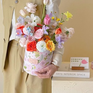 小さな新鮮な花柄ラウンドギフト包装箱フラワーハグバケツフラワーアレンジメントボックス小さな円筒形の空箱子供の日