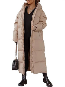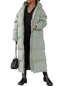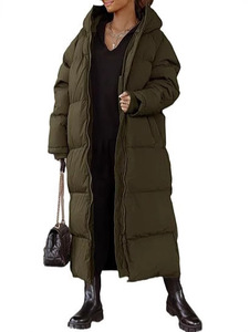 跨境2025亚马逊连帽纯色加长款棉衣外套时尚休闲拉链长袖女士外套