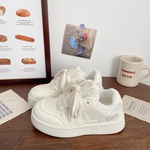 ドーパミンパン白靴女性の 2025 春の新作厚底カジュアルニッチ通気性多用途学生靴