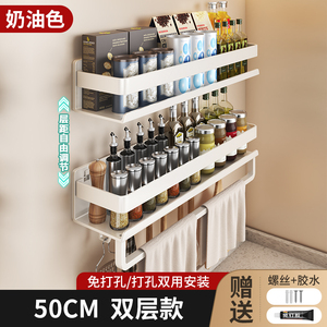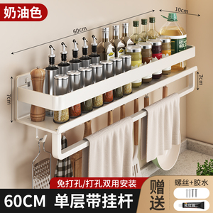 クリームスタイルのキッチン収納ラック白スパイスラックパンチフリー壁掛けスパイス多機能壁収納卸売