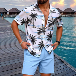 2025 外国貿易夏独立ステーションアマゾンクロスボーダービーチルーズ半袖シャツカジュアルショーツスーツ